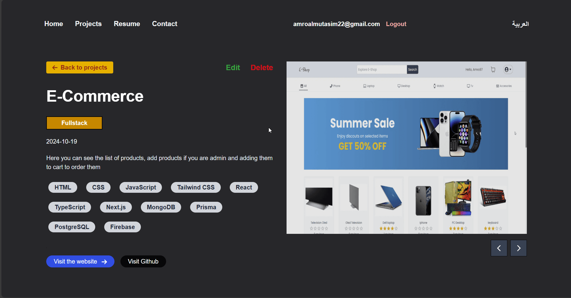 "description": "I made it as you see as a fullstack portfolio which lets me add new projects through a form, edit and delete them,\n\n I made multi-language using next-intl library, I made the dark mode and authentication to let my self sign-in and be the only one who can add projects.\n\n",
